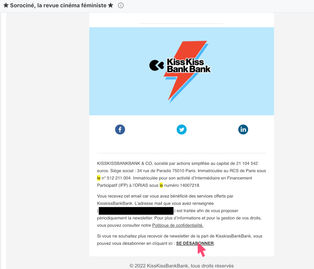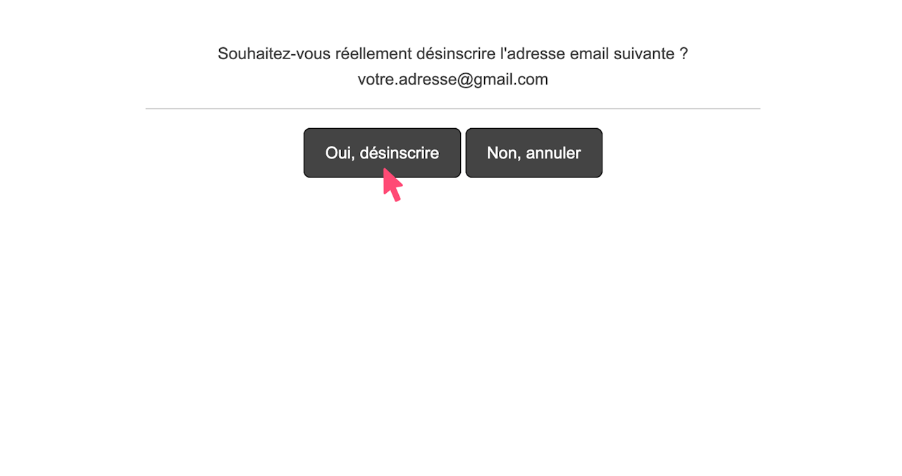 Après avoir cliqué sur ce lien, vous serez redirigé sur une page où il vous sera demandé de confirmer le désabonnement.
