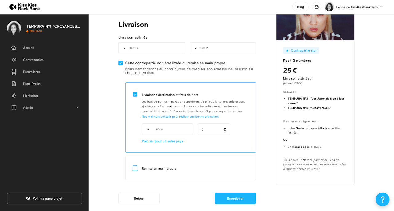 cochez Cette contrepartie/Cet abonnement doit être livré·e ou remis·e en main propre