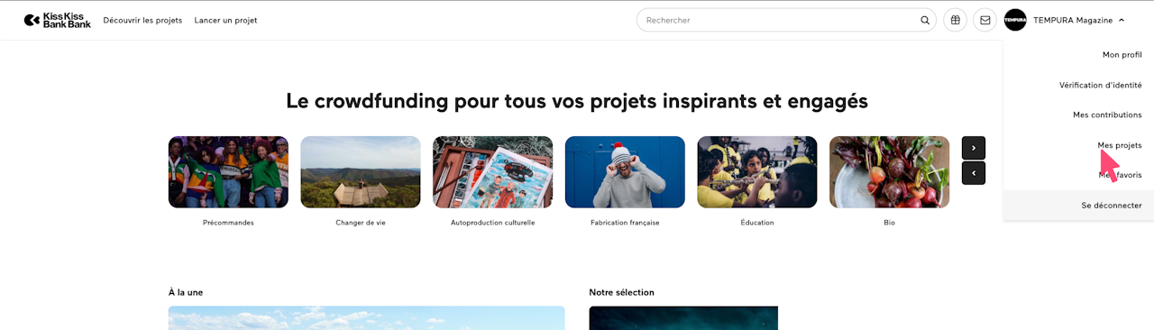 Dans le menu qui s'affiche, cliquez sur Mes projets.