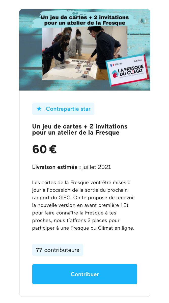 Les contributeurs.trices choisissent les contreparties qui les intéressent en fonction du montant de leur don.